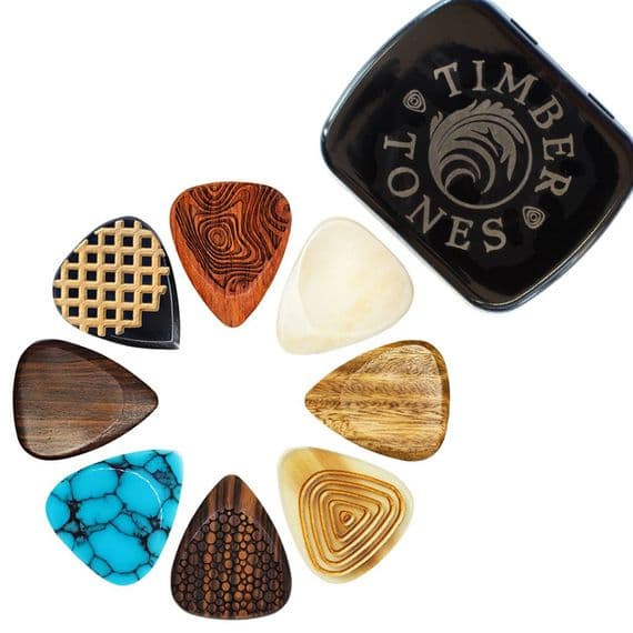 本セットのうち6枚のピックは「クラシック」デザインを採用しており、厚さ約2.5mmから先端にかけて約0.7mmまで面取りされています。スピードや正確性を求める方には小型の「ジャズ」スタイルピック、ストロークプレイ向けにはやや柔軟性のある1mm厚のホーンピックも含まれています。